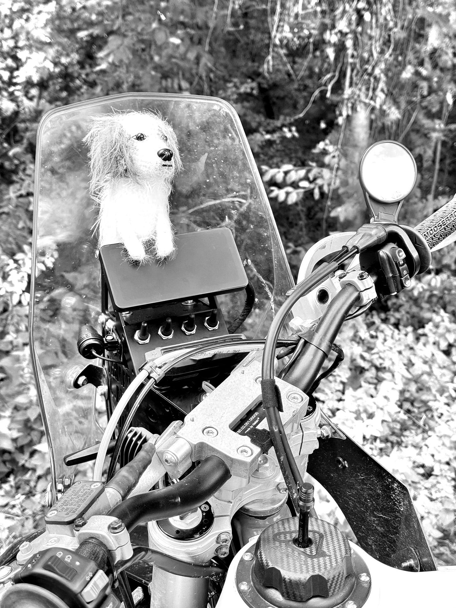 So here we are. Two people. Four saddlebags. One Wi-Fi spaceship possum strapped to a dirt bike. Still figuring it out. Still adjusting the balance.