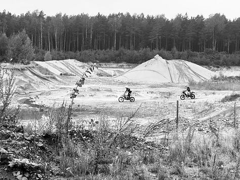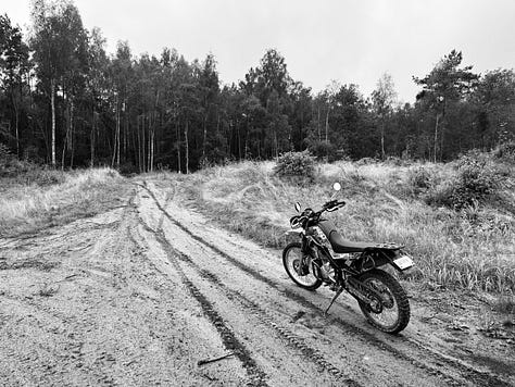 The trails wound through forests that retained night’s dampness even at noon. Mud that wanted your front wheel. Sand that behaved like someone had spilled sugar across the path. Loam that smelled wonderfully ancient. Taylor wound her way through the landscape like the gazelle that truly must be her spirit animal. Once Scott’s bike Katie was stripped all the luggage, she transformed from a lumbering mule into something with teeth. He even managed to keep up—mostly—without providing the forest any new KTM-shaped art installations.