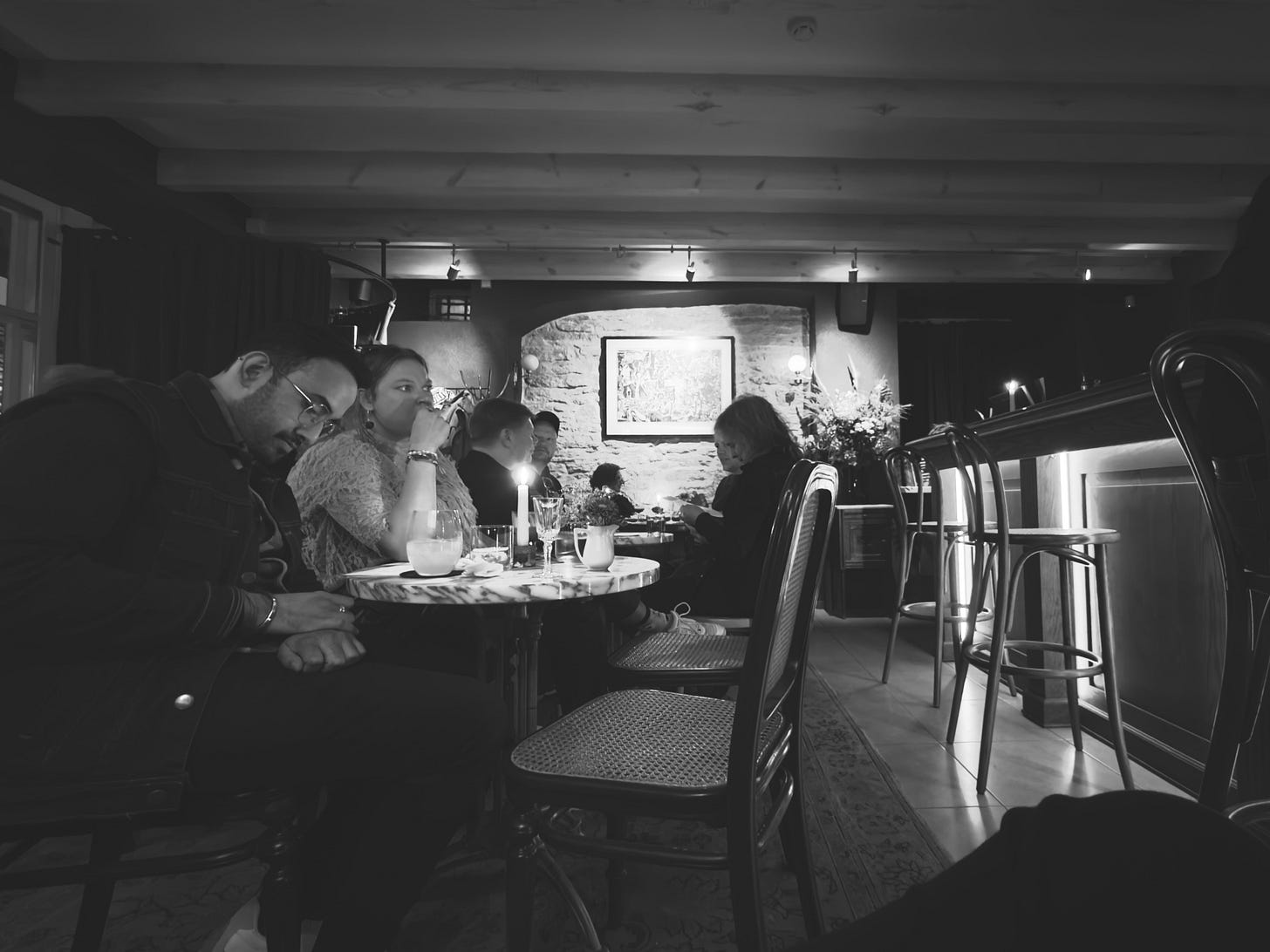 We wandered further toward a little house tucked into one of Tallinn’s narrow stone alleys, a cocktail bar so small it felt like it had grown there organically, like moss between cobbles. It was packed with tables, alive with the kind of soft hum that only happens when everyone in the room knows they’ve found something special. The owner moved behind the bar with the precision of a craftsman, his partner (who we could only assume was his wife) gliding through the crowd with practiced grace, both of them radiating that unmistakable glow of people living out their dream. The cocktails were wild in the best way: inventive without tipping into gimmickry, beautifully balanced, the kind of drinks that make you pause mid-sip just to process how someone thought them up. Every shelf, every light fixture, every tiny design detail had intention behind it. The place didn’t just serve cocktails; it felt like stepping inside someone’s imagination made real.
