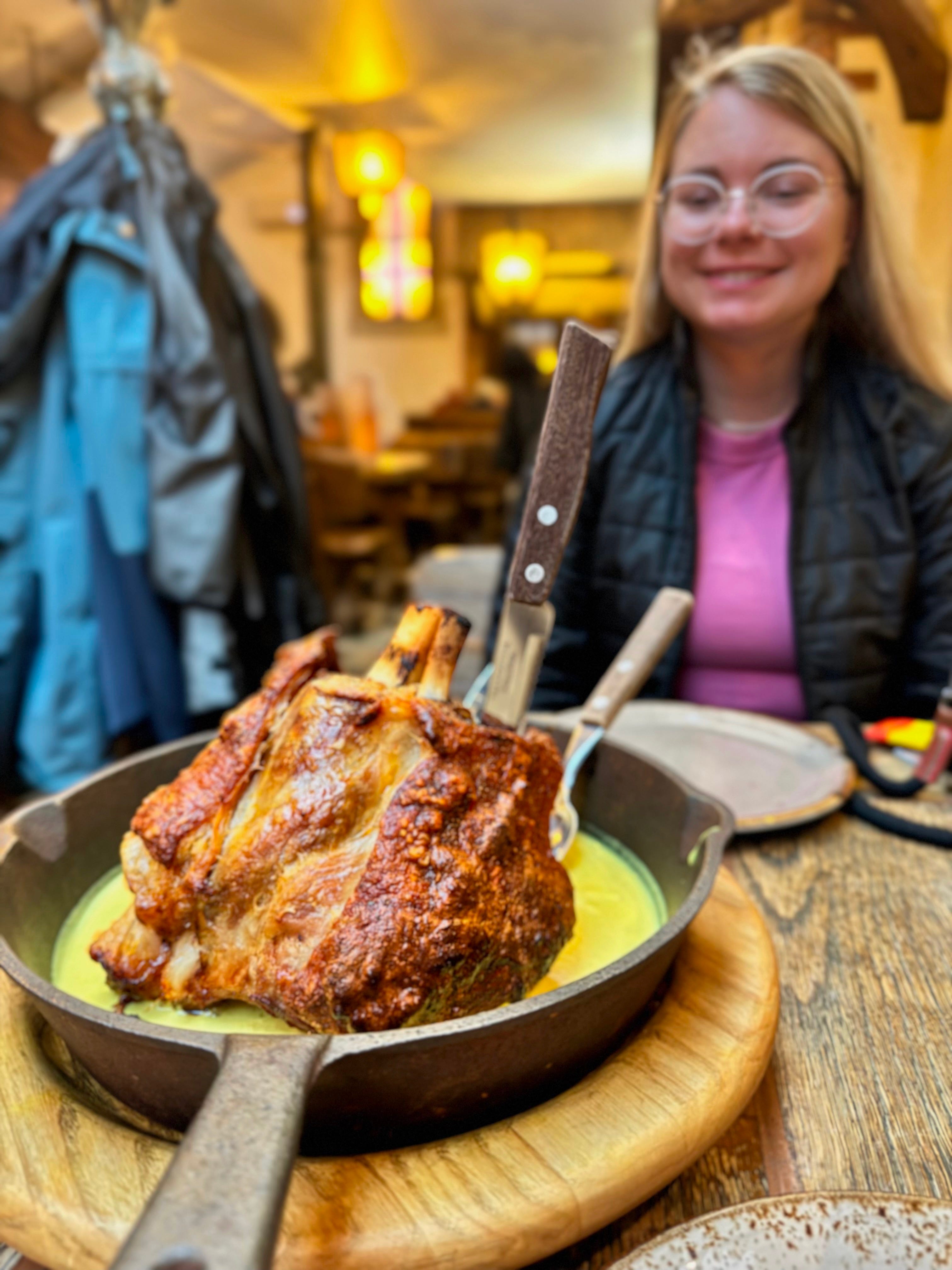 Our first stop was Beer House, a place with a name so direct it almost felt like satire. The interior was a fever dream of antlers, lederhosen, and taxidermied animals posed as if they were mid-shift at a German brewery. A boar held a tray. A wolf towed a wheelbarrow. A squirrel supervised. The wait staff was fully committed to the aesthetic, leaning into the medieval-tavern-cosplay vibe with an enthusiasm that made the whole thing feel delightfully unhinged in the best possible way.