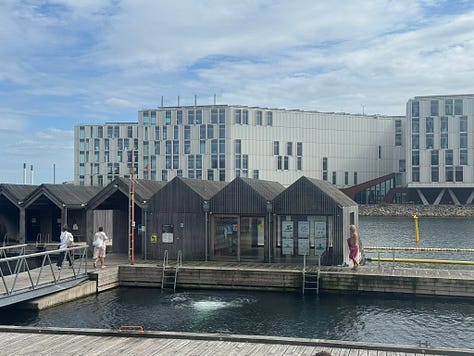 In Copenhagen, Denmark, I ventured into a bakery and coffee shop for a treat that morning (not free). After enjoying every last sip of that warm espresso and sticky, spicy cardamom bun, I walked around the neighborhood- stumbling upon a local area designated for swimming in the city center harbor. I watched as young boys pushed each other off the jumping block, screaming with delight at the freezing shock of water hitting their bodies. I lingered long enough to watch people of all kinds take a quick dip, or swim a few laps. Some were clothed and some were not, and no one seemed to care either way. Of course, after watching other women my age brave the cold, calm ocean water I mustered up the courage to join them.